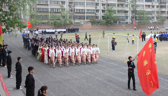首先进行的是第十一届体育文化节运动员入场式,13个院部代表队依次入场,运动员们精神饱满,意气风发,展现了开大师生团结向上,积极进取的精神风貌。
