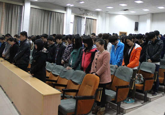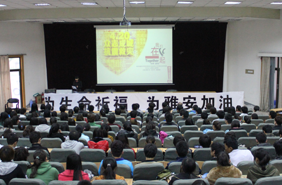 本站讯 4月20日8时,四川雅安市发生7.0级的地震,灾区人民的生命、财产遭受了重大损失。4月22日下午,365官网在晋安路校区报告厅举行“情系雅安,传送温暖”祈福活动,此次活动由校团委组织,晋安路校区的7个院部的近500名师生参加。