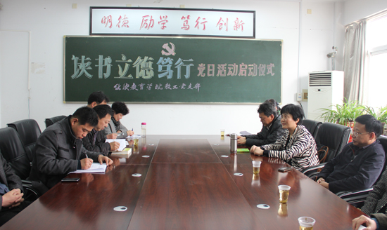 本站讯 4月23日是世界读书日,当日下午下午四时,继续教育学院党总支在该院三楼会议室举办了“读书 立德 笃行”系列主题党日活动启动仪式。副校长万是明、何世玲,组织部、宣传部负责人及该院全体党员参加。仪式由院党总支书记孟祥茹主持。