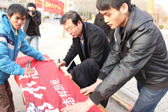 本站讯 3月21日下午,校团委分别在365官网两个校区举办了2013年周末文化广场启动仪式。校党委书记张新梅、校长拜五四、党委副书记储建新以及相关部门负责人出席并参与了活动。