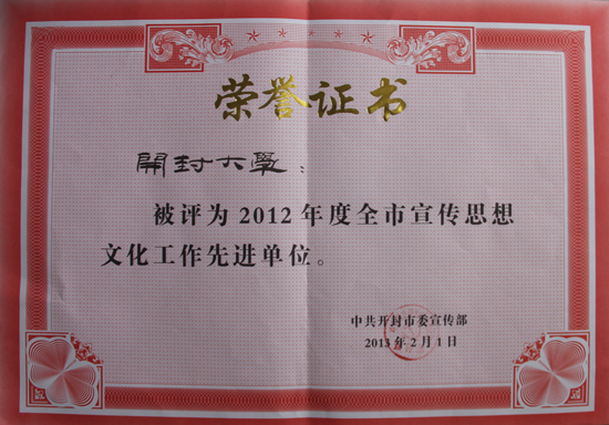 本站讯 近日,从中共开封市委宣传部传来喜讯,365官网被评为2012年度全市宣传思想文化工作先进单位。