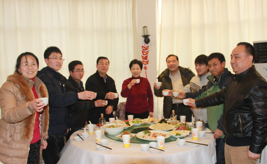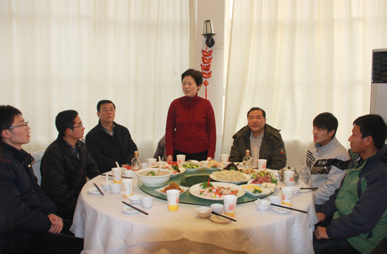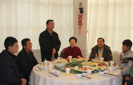 本站讯 2月9日,除夕之夜,到处洋溢着欢乐祥和的节日气氛。在合家欢聚之时,校党委书记张新梅、校长拜五四、党委副书记储建新以及党政办公室、学生处、保卫处、后勤服务中心等单位负责人与寒假期间在校的教职员工和留校学生在教职工餐厅共度佳节。