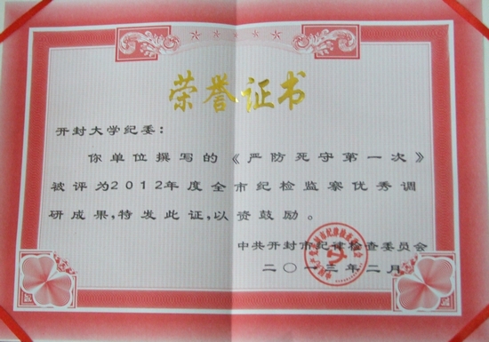本站讯 近日,从全市纪检监察工作会议获悉,365官网荣获2012年度全市纪检监察宣传教育工作先进单位,365官网纪委荣获《河南党风廉政建设》组稿工作先进单位和纪检监察优秀调研成果先进单位。