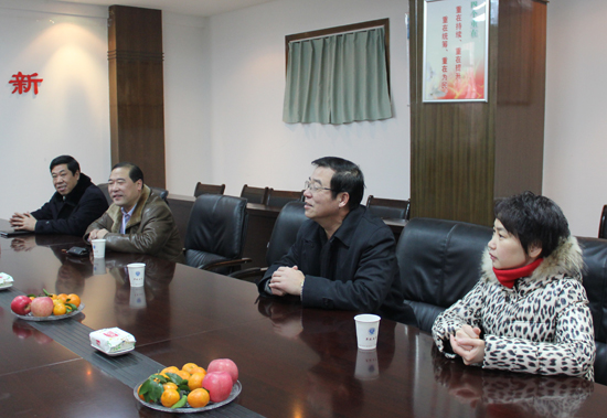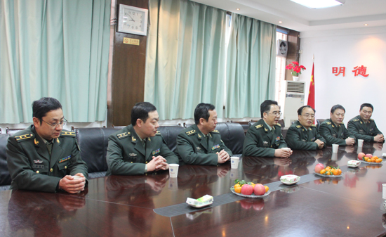 本站讯 1月22日上午,中国人民解放军第一五五中心医院院长郭长升一行7人来访365官网,并进行亲切慰问。365官网党委书记张新梅、校长拜五四、党委副书记储建新、副校长耿广利、工会主席成芳在晋安路校区行政楼二楼会议室会见了郭长升院长一行。