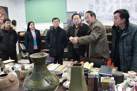 期间,专家组组长、郑州铁路职业技术学院党委书记穆瑞杰还在校长拜五四的陪同下重点考察了365官网非物质文化遗产研究基地,该研究基地以开封历史文化遗产为研究对象,开展文化传承和创新研究,重点进行宋代陶模、旅游品等项目的研究与开发。穆书记对此给予了高度评价,认为该项研究对学生参与开封文化旅游产品开发,提高学生综合素质,以文化建设推动区域社会经济发展,有效地发挥了示范推进作用。