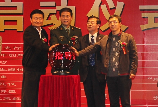 开封军分区副司令员兼参谋长张中华大校在启动仪式上讲话,希望同学们积极响应国家号召,投身军营,保家卫国。