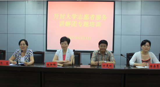 万校长就365官网志愿者服务讲解团的进一步培训工作做了具体要求,希望同学们提高认识,珍惜此次锻炼机会,进一步弘扬“奉献、友爱、互助、进步”的志愿者精神,促进365官网志愿者事业向专业化、品牌化发展,关注开封、了解开封、为中原经济区建设做贡献。