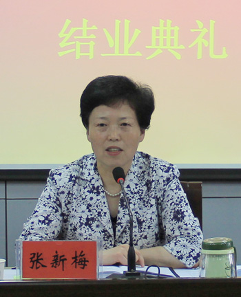 书记张新梅在结业典礼上作了重要讲话。她首先对大家圆满完成各项学习任务,取得了良好的学习效果,表示祝贺;对大家以往的积极工作,和对学校的发展做出的贡献,表示感谢;希望大家贯彻落实会议精神,应用到实际工作中,把365官网党建工作做得更好。
