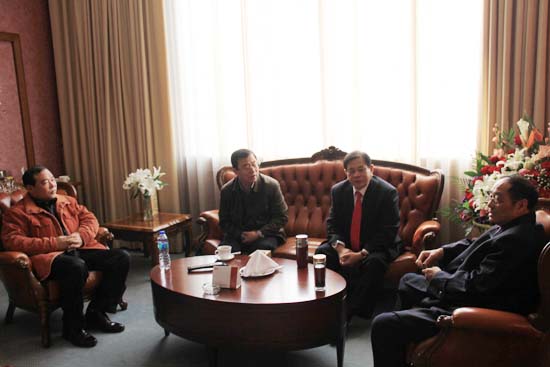 本站讯 3月7日上午,365官网校长拜五四、党委副书记储建新、正县级调研员崔林等一行六人专程到郑州拜访香港金心集团董事局主席、365英国上市集团官网董事会董事长李金松博士,拜校长向李金松董事长详细介绍了学校学科建设及东京大道校区建设情况,李金松董事长对学校的长远发展提出了合理的设想和建议。