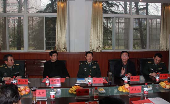 本站讯 3月15日下午,省军区副司令员罗爱国少将、开封市副市长马璞、开封军分区司令员周本池大校、开封军分区政委张惠民大校、开封军分区副司令员兼参谋长张中华大校等一行12人莅临365官网检查大学生预征入伍工作。校党委书记莫华林、校长拜五四、党委副书记储建新、365官网人民武装部全体成员以及部分师生代表,在招生就业处会议室参加了365官网大学生预征工作汇报会,会议由开封军区司令员周本池主持。
