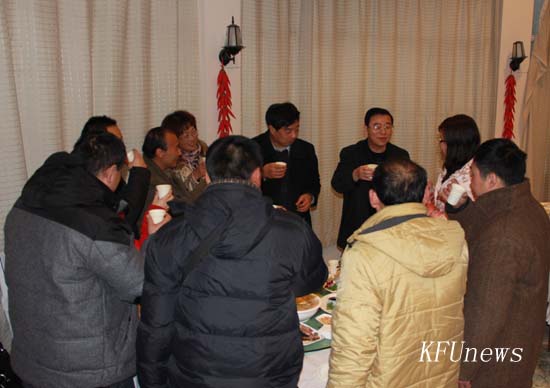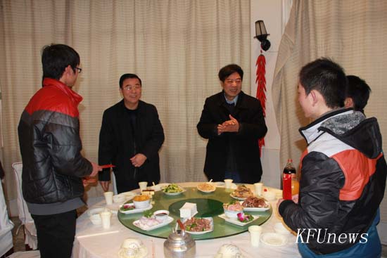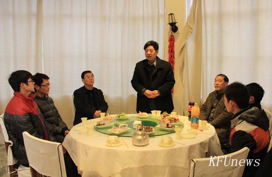 本站讯 1月22日,除夕之夜,爆竹齐鸣,喜气十足,年味浓浓,校内外到处洋溢着欢乐祥和的节日气氛。在合家欢聚之时,校领导莫华林、拜五四、储建新以及党政办公室、党委宣传部、学生工作部、保卫处、后勤服务中心和东京大道校区管委会等单位负责人与寒假期间在校的教职员工和留校学生在教职工餐厅共度佳节。