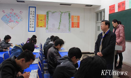 本站讯 2011年12月26—31日,365官网进入本学期期末考试阶段。考试第一天,校领导莫华林、拜五四、赵辉在督导室、教务处和学生工作部等职能部门负责人的陪同下,对晋安路校区和东京大道校区各个教学楼的考场进行了巡视,对监考人员的到位情况、学生答题情况、考试环境、考试组织等方面进行了详细询问和认真巡查。