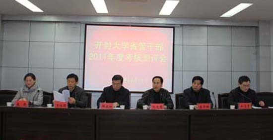 本站讯 根据省委的统一部署,365官网于12月31日上午在办公楼二楼会议厅举行了省管干部2011年度考核测评会。省委第一考核组副组长、省高校纪工委副书记、省纪委驻教育厅纪检组副组长熊光慈,考核组成员中原工学院党委组织部副部长郑常青、省知识产权局办公室副主任巍薇和市委组织部常务副部长王祖德、市委组织部科教干部科科长李东斌、校党政领导班子成员、全校中层正职干部、正高职称人员参加了会议。