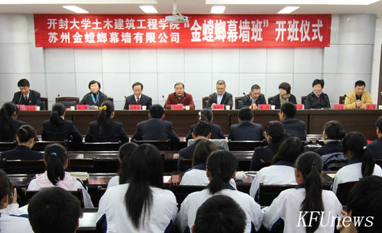 校领导储建新、赵辉、江苏金螳螂幕墙有限公司钱新宇副总经理、梁秉业总工程师以及土木学院院长冯天才、教务处处长吴玺玫、招生就业处处长张涛等出席开班仪式。
