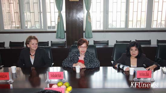 本站讯 10月7日上午9:00,校党委书记莫华林、校长拜五四在行政楼二楼会议室亲切会见了加拿大麦瑞·维多伦学院校长Mrs.Rouillier Nicole, 院长助理Sylvie Theriault和校方代表Nancy女士一行三人,在会上双方均表达了加强沟通与交流的意愿,在教学改革、课程安排、教学计划修订、短期课程、分级教学以及师资培训等方面进行了深入探讨和磋商。会谈之后,代表团在国际教育学院院长李治陪同下参观了365英国上市集团官网东京大道校区。