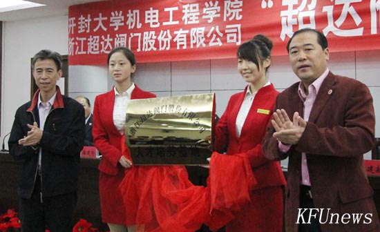 随后,储书记和王汉洲董事长为“超达阀门专班”开班进行了揭牌,王汉洲董事长又向机电工程学院捐赠了“超达阀门专班”建设经费。