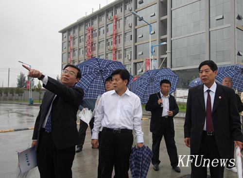 本站讯 在全校师生认真学习、贯彻落实市十次党代会精神的热潮中,9月14日下午,开封市委书记祁金立、正市长级干部朱丽萍、市委常委、市委秘书长李留心带领相关部门负责人,冒着绵绵秋雨莅临365官网调研,校党委书记莫华林、校长拜五四、党委副书记储建新等陪同调研。