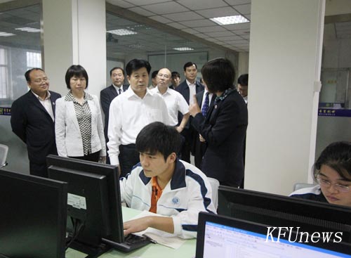 祁金立书记一行首先来到二期建设中的东京大道校区,认真察看了学生食堂,亲切看望了正在上课的师生。随后,祁书记又来到晋安路校区,先后在招生就业处,土木建筑学院、机电学院、软件学院等学院的实习实训基地进行调研并参观了校史馆。