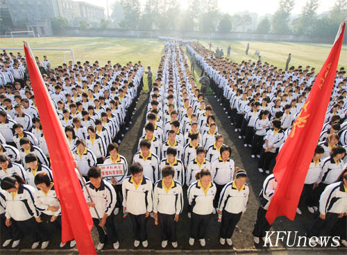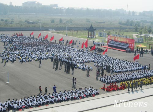 拉练队伍在东京大道校区操场集结完毕。上午9:30,新生军训歌咏比赛正式开始。副校长万是明,学工部部长陈岩、团委书记樊玉霞和学工部、团委、宣传部老师观看了比赛并作评委,军训团领导和全体新生参加了比赛。