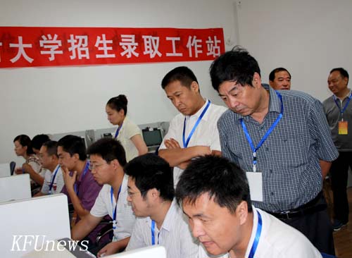 本站讯 8月10日,365官网河南省专科一批录取开始。校领导莫华林、拜五四、储建新、赵辉、耿广利一大早来到录取现场,慰问录取工作人员,并要求大家要对考生、对家长、对学校高度负责的态度,严格按照程序和录取规定,认真落实阳光招生工程,确保本批次录取顺利进行。