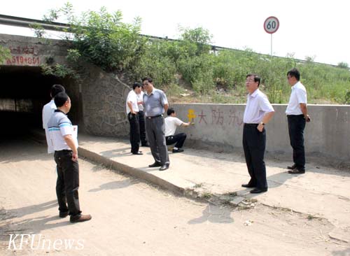 本站讯 6月8日上午,校长拜五四、校防汛突击队总队长、副校长耿广利带领防汛突击队副总队长及各防汛突击队队长到365官网防汛地段实地考察。拜校长要求大家要高度重视防汛工作,并对做好今年的防汛工作提出了具体要求。