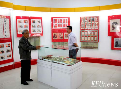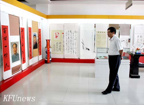 本站讯 5月31日上午,校党委书记莫华林、党委副书记、校长拜五四到校史馆参观“庆祝建党90周年伟人图像 毛体书法展”,并慰问、感谢为本次展览提供展品的杞县人大退休干部刘文印同志。