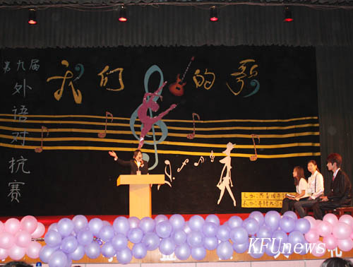 在副校长耿广利宣布对抗赛决赛开幕后,激烈的比赛正式开始。决赛采取班级演讲、外语歌曲展示、话剧表演等形式进行。经过近三个小时的比拼,最终评出一等奖1名,二等奖2名,三等奖3名。