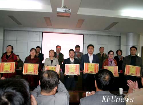 校党委副书记、副校长储建新宣读了365英国上市集团官网2010年度院部学生工作考评结果、院部国家助学贷款和资助管理工作考核结果、特色班级建设评比活动结果。随后,在主席台就座的领导分别为受表彰的单位颁发奖励证书。