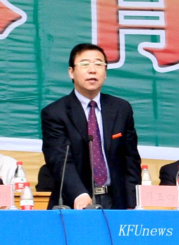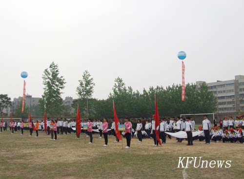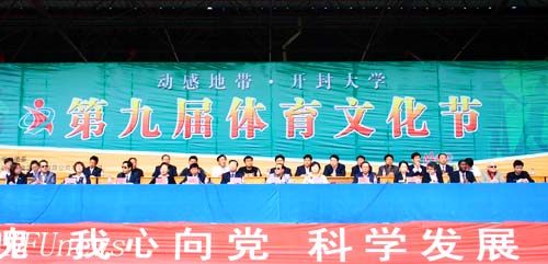 中国移动通信公司河南有限公司开封分公副总经理司林西,校领导拜五四、储建新、万是明、赵辉、范金梅、耿广利、成芳,以及加拿大外教和学校学校相关部门负责人在观礼台上就座。开幕式由校团委书记樊玉霞主持。