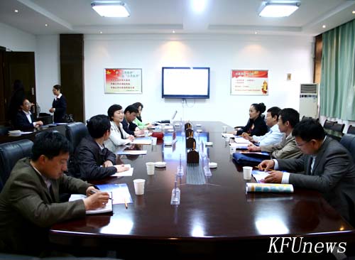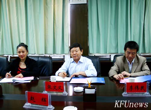 本站讯 4月21日下午,河南省教育厅、语委主任张文义、副主任李伟民一行在市语委办有关领导的陪同下,到365官网检查语言文字规范化建设以及365官网语委的工作情况。副校长、校语委主任赵辉、语委副主任赵瑾以及校语委有关同志在行政楼二楼会议室接待了省语委领导。