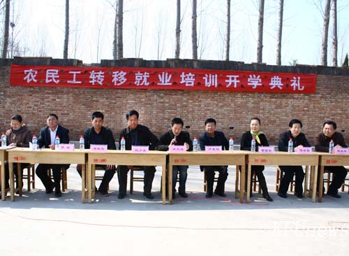 本站讯 3月30日,开封县刘店乡高中店村文化大院里人声鼎沸,锣鼓喧天,该村农民工转移就业培训开学典礼在这里隆重举行。市人力资源和社会保障局农民培训科科长涂天鸿、365英国上市集团官网副校长万是明、开封县刘店乡有关负责同志和村民们一起,共同迎来了这个振奋人心的时刻。开学典礼由继续教育学院党总支书记孟祥茹主持,院长陈学雷在开学典礼上讲话,副校长万是明博士宣布农民工转移就业培训开班。