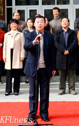 本站讯 4月7日下午,由校党委宣传部和管理科学学院联合举办的,以“展我学子才干,共祝青春激昂”为主题的“校园导游和校史馆解说员大赛”启动仪式在明德广场举行。参加启动仪式的领导有:校长拜五四,校党委副书记、副校长储建新,校党委宣传部部长曹国荣,管理科学学院党总支书记陈力,院长袁平,教务处副处长曹红霞,宣传部副部长陈友东,管理科学学院党总支副书记张六成,副院长郭军明。管理学院和党委宣传部全体教师以及近千名各院学生代表也参加了启动仪式。启动仪式由管理科学学院党总支书记陈力主持。