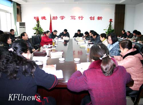 会上,宣传部部长曹国荣简要通报了2011年宣传思想文化工作要点及上半年工作进度安排,对即将开展的网络安全大检查活动做了强调。党委委员、党政办主任成芳传达了省委高校工委、省教育厅联合下发关于应急事件处理的文件精神,对校长接待日等工作进行了安排。学工部部长陈岩就新学期学生返校及学生工作重点做了强调。秦部长传达了全国、全省第19次高校党建工作的会议精神,并对组织部(离退处)负责的创先争优活动、迎接党建工作评估、纪念建党90周年系列活动、干部选聘和培训、基层组织与党员队伍建设及离退休、关工委等2011年主要工作进行了通报和安排。