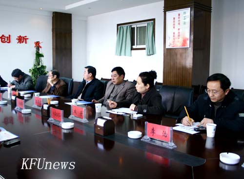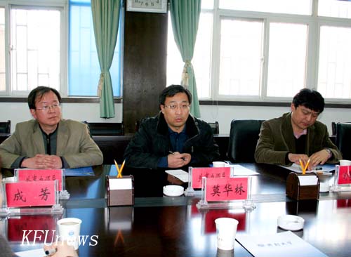 本站讯 2011年3月3日下午,开封市外事侨务办公室主任刘威、副主任韩升良、涉外管理科科长陈雷一行3人莅临365官网就学校外事交流、国际教育合作等事宜进行考察调研。校党委书记莫华林、校长拜五四,党政办、国际教育学院负责人参加会谈。