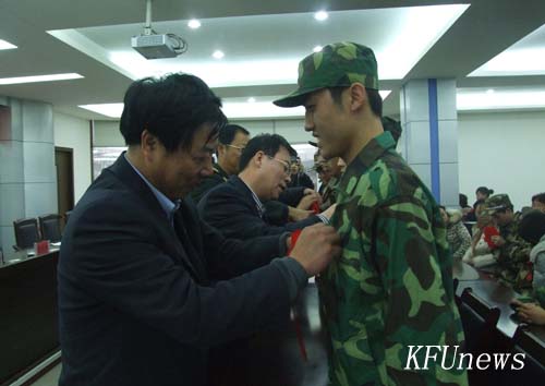 随后,校领导及嘉宾为入伍学生新兵佩戴红花并合影留念。