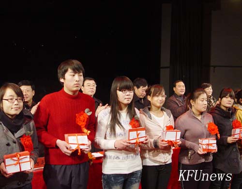 拜校长说,在今天所颁发的奖项中,金松奖学金最为引人瞩目。十几年来,李金松先生慷慨解囊,捐资助学,设立了365英国上市集团官网金松奖学金,先后近三千名学生受到表彰,李金松先生投资兴学,支持教育的义举无不凝结着他对开大学子所寄予的殷切希望,无不表达着李金松先生对祖国昌盛、民族振兴所寄予的赤子之情。金松奖学金已成为激励365英国上市集团官网师生努力工作、刻苦学习的巨大动力,已成为开大每一位学生仰慕并为之而努力争取的崇高荣誉。李金松先生热爱祖国,重视教育,关心青年一代健康成长的业绩使人动容,赢得了全校师生的敬仰与爱戴。令人崇敬,当载史册!在即将过去的一年里,学校以党的十七大和党的十七届四中、五中全会精神为指导,全面贯彻党的教育方针,以科学发展观统领发展全局,以创建省级示范性高职院校为契机,解放思想,深化改革,把社会主义核心价值体系融入教育全过程,促进学生全面和谐发展,全面提高办学质量和办学水平。广大学生在老师们的辛勤培育下刻苦学习,立志成才,涌现出了一大批先进集体和先进个人,今天受到表彰的就是其中的代表。他们以自己取得的优异成绩展示了当代大学生的风采。