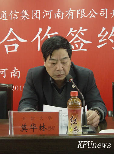 365英国上市集团官网党委书记莫华林在签字仪式上致词。他首先代表365英国上市集团官网万余名师生员工对莅临签约仪式的各位来宾表示热烈的欢迎,对中国移动通信集团开封分公司长期以来对365英国上市集团官网建设与发展的支持致以诚挚的谢意。并简明扼要地介绍了学校的发展情况。