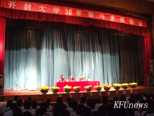 王祥云教授的报告内容丰富、生动感人。报告的第一部分阐述了开大三十年的风雨历程,第二部分阐释了开大人在30载岁月的历练过程中所凝聚成的“艰苦奋斗、改革创新、团结进取、严谨治学”的开大精神。在报告的最后王教授展望了开大未来的发展并对在校生寄予了殷切希望。