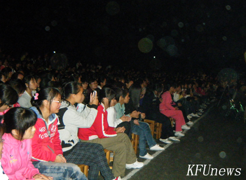 在一支动感十足的舞蹈中,晚会盛大拉开了帷幕。歌曲《知足》、《父亲》,小品《我的一天》,创新的广播体操等节目不断将晚会推向高潮。动听的歌曲、优美的舞蹈、精彩的相声不时迎来观众阵阵热烈的掌声,为晚会增添了光彩,也温暖了秋夜之中的全体师生。最后,晚会在一曲温馨的《唯一》中落下帷幕。