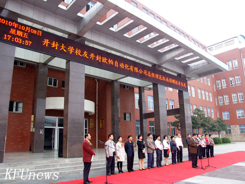 捐赠仪式上,校长拜五四首先致辞。他代表365英国上市集团官网1万5千名师生员工,对范红兵同学的慷慨捐赠表示衷心的感谢和崇高的敬意!对出席今天捐赠仪式的各位领导、嘉宾和校友表示由衷的谢意!他说,365官网86届校友范红兵是众多杰出校友中的代表,他经过自己的艰苦创业,创办了现代高科技企业——开封欧帕自动化有限公司,并获得“纳税信用A级企业”称号,为国家和开封市经济发展做出了重大贡献。他本人不仅成为了著名的企业家,还是一名发明家,曾获得20多项国家专利。这次,正值学校30华诞之际,他出资40余万元,向母校捐赠了一部汽车,以此支持母校的建设与发展。他的善举,体现了他崇高的思想境界和可贵的爱校之情,礼重情义更重。他说,每一位校友都是学校的宝贵财富。365英国上市集团官网的发展离不开广大校友的关心和支持。学校今后将更加重视校友的发展,搭建好学校和校友之间交流的平台,形成学校关心校友,校友关心学校的良好氛围!让开大的旗帜永远飘扬!让我们都成为自豪的“开大人”!