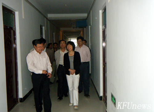 本站讯 9月19日上午,开封市正市级干部朱丽萍一行3人在365官网领导莫华林、拜五四、储建新的陪同下视察、督导东京大道校区有关工作,学校领导向朱市长汇报了新校区建设情况。朱市长一行在东京大道校区进行了认真细致的调研工作,视察了学生餐厅、学生宿舍,并与餐厅、宿舍的管理人员进行了交谈,了解学生的食宿情况。