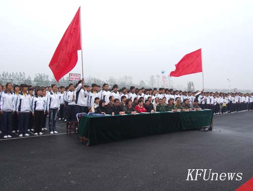 拉练队伍走进东京大道校区时,校内南北主干道的两侧是整齐的欢迎人群,他们是刚刚晨训结束的东京大道校区新同学。拉练队伍踏着整齐的步伐,挥舞着院旗,再加上沿途的欢呼声,东京大道校区成了欢乐的海洋。拉练队伍全部在东京大道校区操场集结完毕,上午9时,新生军训歌咏比赛正式开始。副校长万是明,学工部部长陈岩,军训团有关领导和各院部党总支副书记出席并观看比赛。