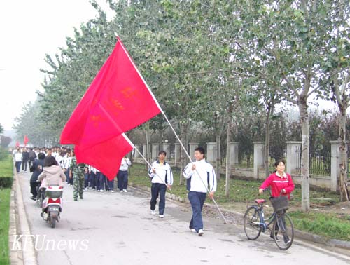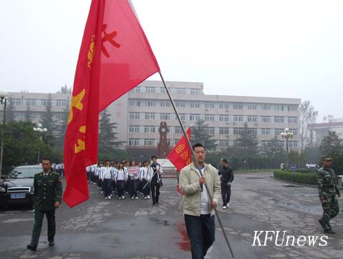 本站讯 9月26日早上7时,365英国上市集团官网晋安路校区2010级参加军训拉练的新生踏着整齐的步伐从学校北大门出发,在昨夜秋雨给人们带来的丝丝寒意中,正式踏上了征程,整齐的队伍和嘹亮的口号昭示着同学们的刚毅,展现出大学生的风采。