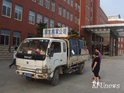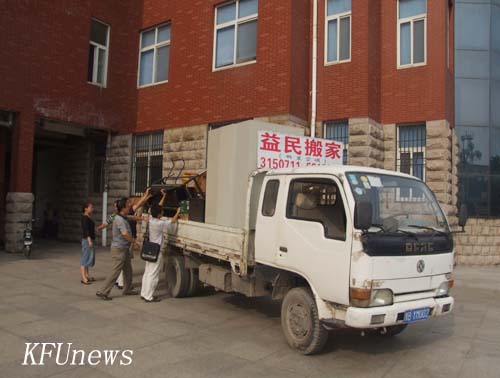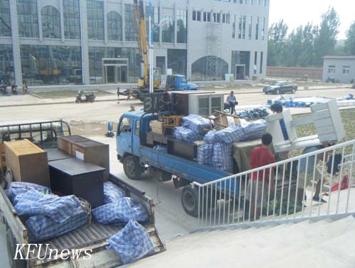 本站讯 8月18日,首批搬入北校区的财政经济学院和人文学院的搬迁工作正式启动。两院的老师一大早都来到学院办公室,开始往搬运车上装大件办公用具和提前整理好的大大小小的包裹,整个搬迁工作紧张而有序。当天的搬迁工作从早上6时持续到下午7时多。