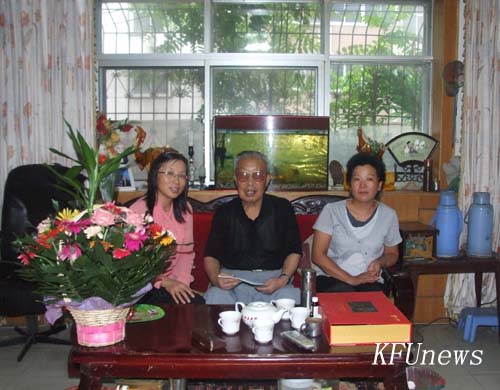 本站讯 8月20日下午,校党委组织部长、离退处处长秦雪峰、副处长孙伟到离休老干部张中杰家慰问,并带去了学校的祝福。张老是365官网1980年建校时的元老,建校之初的两个负责人之一,第一任副校长,今年已86岁高龄,每天坚持锻炼身体,精神矍铄,和蔼可亲。他一直都关注着学校的发展,特别是365官网30年校庆,他一拿到秦部长等带去的365官网30年大事记初稿,就坐下来一字一字地认真校对初稿的建校初5年大事记,一边校对一边回忆学校创业时的感人故事。前5年的大事记,张老整整校对了一个下午,那认真劲不减当年。校对结束后,张老又给学校提供了他珍藏的很多宝贵校史资料。