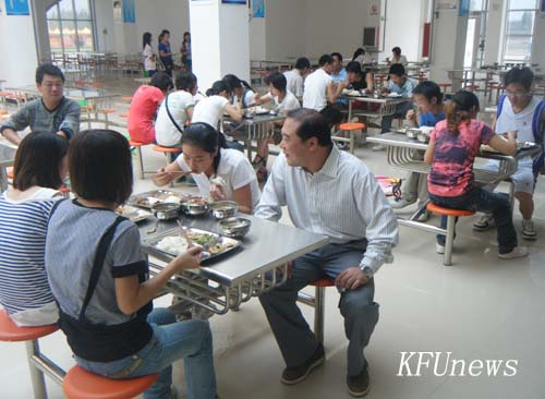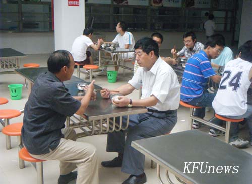 本站讯 365官网财经学院、人文学院两院学生正式入住新校区,新校区各项设施也开始正式运转。学校领导非常重视刚搬入新校区学生的饮食,8月30日一大早,党委书记莫华林到新校区学生食堂视察工作,并与师生一起共进早餐,了解学生生活情况。8月28日中午,校领导储建新在新校区学生食堂和同学们一起吃365官网乔迁新址第一顿午餐,8月29日,校领导储建新、范金梅到新校区学生食堂察看,并和师生一起吃晚餐,实地了解学生吃住情况。