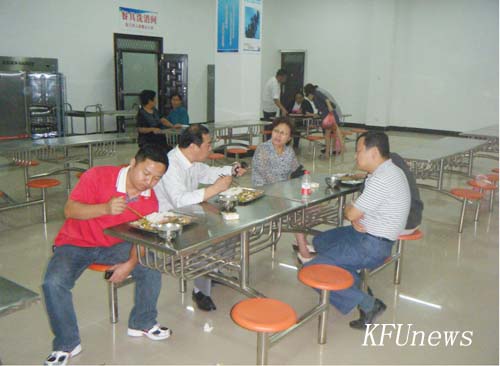 校领导分别察看了食堂售饭窗口、就餐大厅和食堂操作间,仔细询问同学们的就餐及生活情况,还就食堂的饭菜价格、餐具卫生等方面,向后勤公司负责同志提出了具体意见。并就食堂环境的局部改造对后勤公司的同志给予了良好的建议,要求新校区综管办要建立起长期有效的沟通机制,及时发现问题,及时商讨解决学生反映的问题。并要求新校区综管办的同志要继续努力工作,积极为同学们营造优良的学习生活环境。