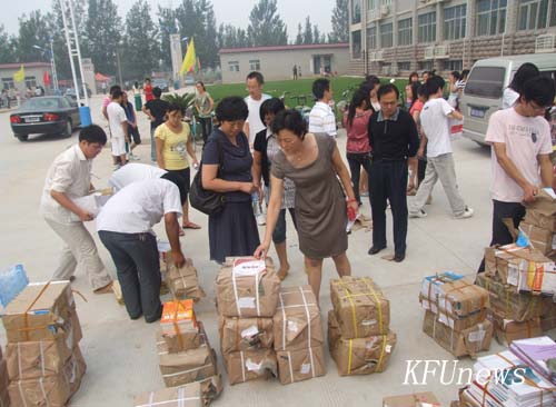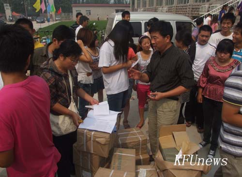 本站讯 8月30日上午,新校区教学楼门前,一堆堆教材摆放整齐,周围有很多学生,有的在和老师一起清点数量,有的正准备搬书。记者走到前,发现被学生围着的老师是教务处处长吴玺玫和教务处的其他同志。吴处长告诉记者:“以前都是院部派人到教材科领取各院的学生教材,今年财经学院、人文学院两院刚刚搬到新校区,为了减少两院的工作压力,教务处全体出动,用学校派的专车把教材运到这里,直接分发到院里,确保同学们提前拿到新教材,保证新校区按时开课。”