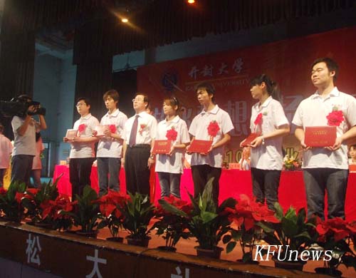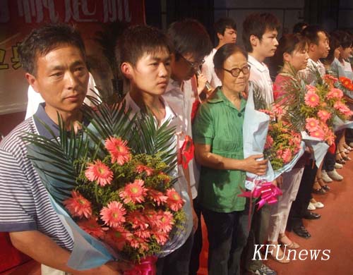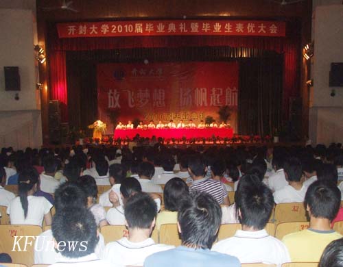 拜校长最后给同学们提出了殷切希望,并祝福他们前程似锦,一生平安。他说,第一要胸怀祖国,志存高远,甘于奉献;第二要爱岗敬业,勤勤恳恳,砺练心智;第三要勤于学习,勇于实践,努力成才;第四是希望同学们走出校门后,不要忘了母校,继续关心母校的建设和发展,为开大更加美好的明天继续献计献策。