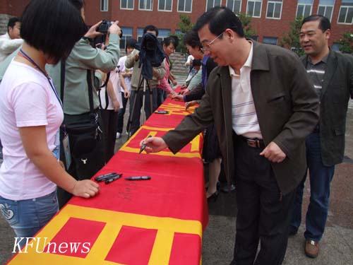 学生代表也在签字仪式上代表应届毕业生发言。签字仪式结束后,校长拜五四和张中华在活动现场带头签名,随后,毕业生们在签字台上争先恐后签下自己的姓名。